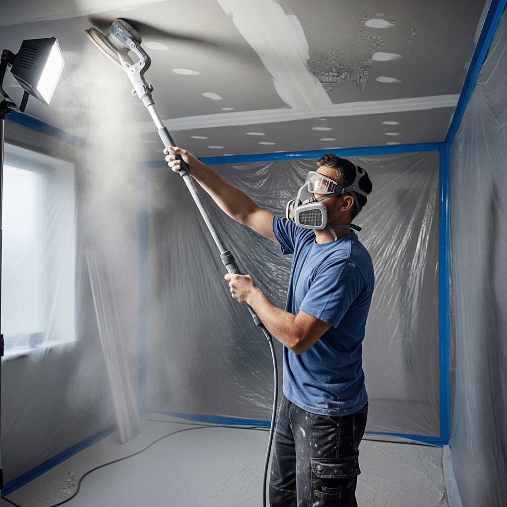 Drywall sanding creates fine dust that spreads easily. To manage it: